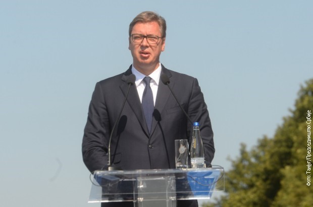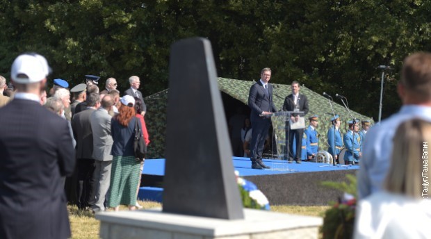 “Зато никада нећемо прихватити ревизионизам историје, никада нећемо дозволити промену прошлости у којем би тако тешко страдални и напацћени српски народ био проглашаван за фашистичке слуге и за некога ко је био агресор на овим просторима”, поручио је Вучић.