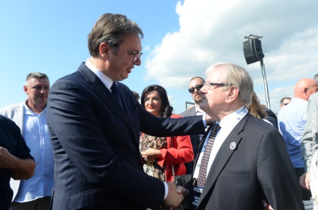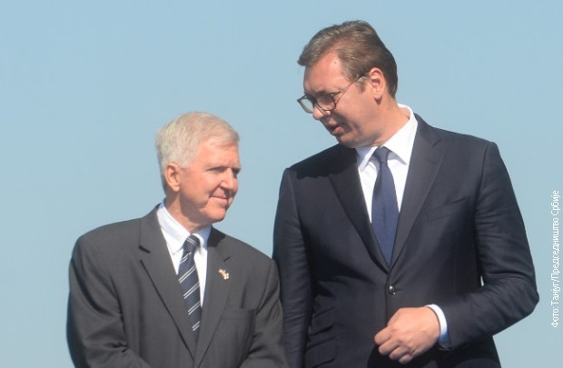 “То говори колико српски наод воли и чека боље односе са САД. Нема Србина овде који на овакве речи не аплаудира. Молим вас, а знам да нећете због мале Србије да мењате спољну политику, да пренесете вашој влади, која по први пут после много година жели да нас чује, не кажем да се слажу, али желе да нас саслушају по питањима која су најтежа за нас и око којих се никада нећемо договорити, да нећу да будем председник земље која има Америку за непријатеља. Србији је било доста крви, пропадања, хоће посао, путеве и аутопутеве, да живи боље и зато вас молим да тај наш вапај разумете”, рекао је Вучић.