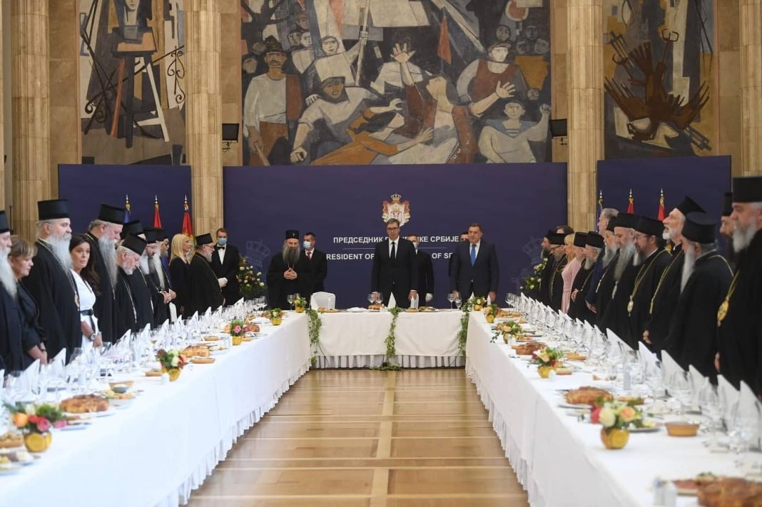 Председник Србије Александар Вучић организовао је данас на Андрићевом венцу ручак за патријарха Порфирија и епископе учеснике Сабора Српске православне цркве.