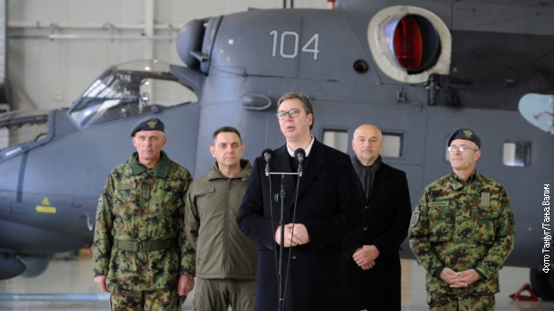 “Кажу, био је правни саветник ту и ту, иначе, он је економиста. Па, шта и ако је био, не разумем, је л’ то неко кривично дело? Шта је више смисао целе те афере: да ли то да смо ми наоружавали Украјину, као што те прво рекли, па смо доказали да сте лагали? Да ли зато што су наводно по нижим ценама куповали мине и гранате? Е, ту бих се одмах сагласио – нема проблема, ухапсите их све, али није ни то. Да ли је смисао да је Бранко ту радио нешто или није, јер сам га ја оптужио да је он тамо неки запослени, а испоставило се да није ни запослен? Можда има човек уговор… шта хоћете? Је л’ забрањено да буде правни саветник некоме?”, запитао је председник.