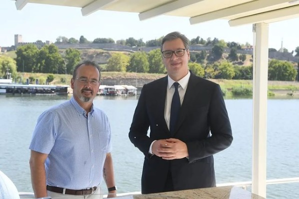 Вучић је на инстаграму уз фотографију са америчким амбасадором навео да је имао отворени и пријатељски разговор са амбасадором САД Ентонијем Годфријем, у најлепшем амбијенту Београда са воде.