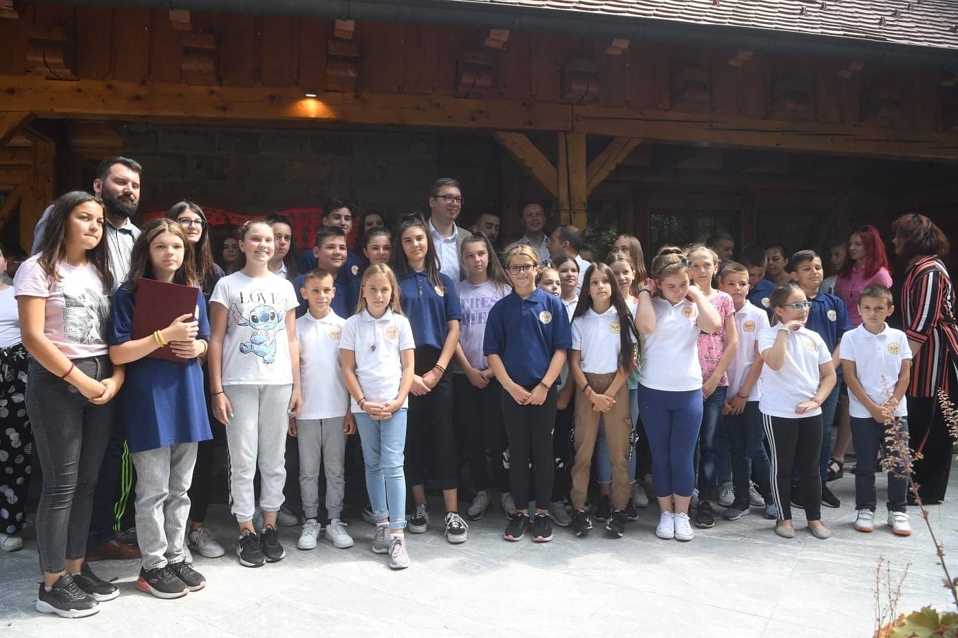 Председник Александар Вучић угостио је данас у Вили „Мир“ српску децу из Федерације БиХ и Хрватске, која у склопу Летњег кампа бораве у Србији и поручио им да уче ћирилицу, поштују своје комшије, да се воле међусобно, али да увек чувају своје српско име и презиме, додајући да ће им држава помагати колико може.