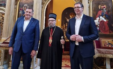 Са Вучићем, цркву су посетили и српски члан Председништва БиХ Милорад Додик и министар у Влади Србије Ратко Дмитровић.