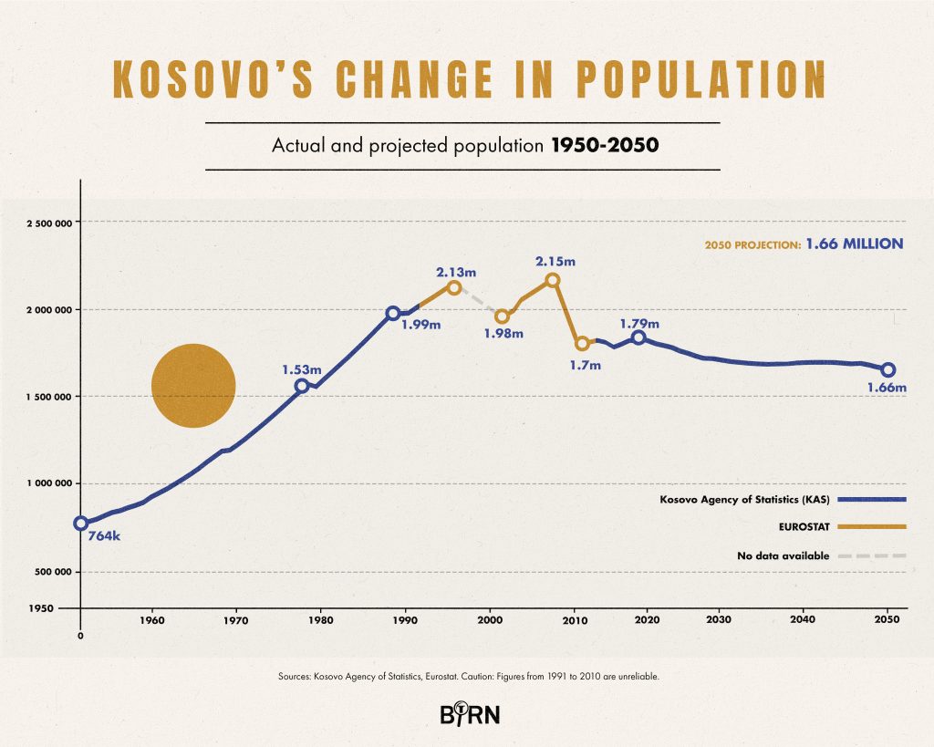 Када је 2011. године обављен први послератни попис становништва, откривено је да број становника на Косову далеко мањи него што је ико мислио – чиме се објашњава нагли пад броја становника у подацима Еуростата.