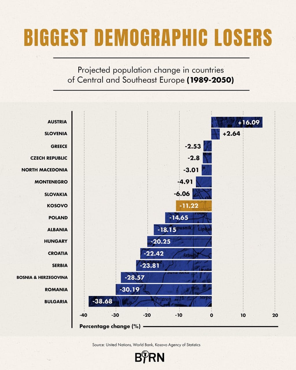 Трендови су ипак јасни. Косово годинама – чак неколико деценија – заостаје за остатком Балкана када је у питању старење и смањење становништва, али уколико се нешто не буде променило, оно ће кренути потпуно истим правцем као и његови суседи.