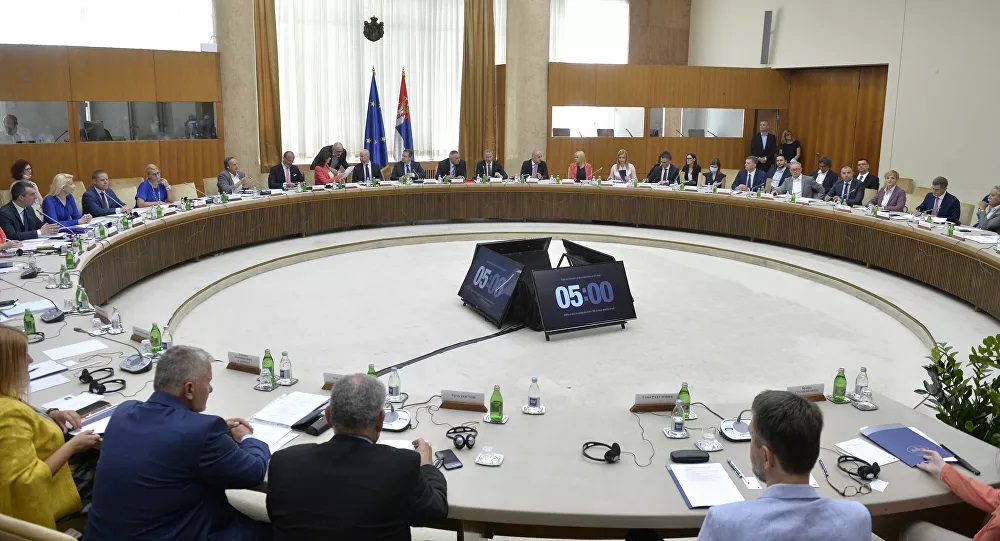 Први састанак у оквиру дијалога власти и опозиције о изборним условима, уз посредовање Европског парламента, почео је у Палати “Србија” уз учешће европарламентараца Тање Фајон, Владимира Билчика и Кнута Флекенштајна. Састанку којем председава председник Скупштине Ивица Дачић присуствују представници власти и опозиције – преноси РТС и други медији.
