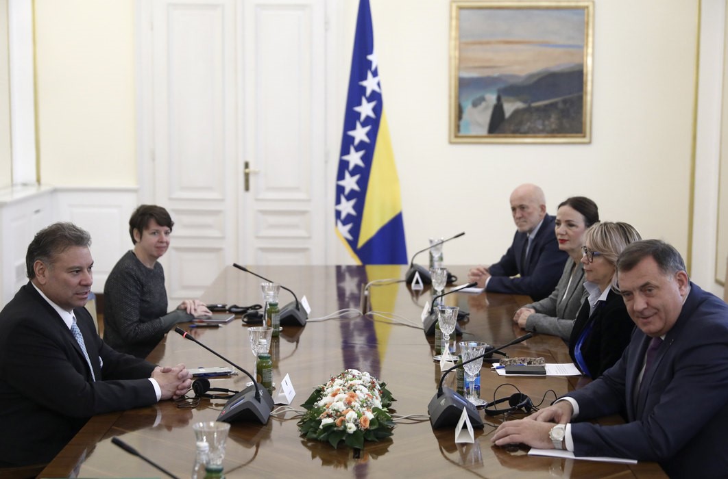 Ескобар је током сусрета са председавајућима оба дома парламента Федерације БиХ (ФБиХ) Томиславом Мартиновићем и Мирсадом Заимовићем поновио опредељење САД да се поштују Вашингтонски и Дејтонски споразуми, саопштено је из Дома народа парламента ФБиХ.