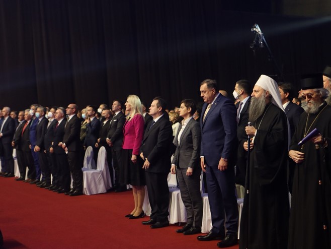 Свечана академија је почела интонирањем химни Републике Српске и Србије, након чега су сви у сали устали и одали пошту палим борцима минутом ћутања. Потом је црквени хор запевао песму за упокојене “Вјечнаја памјат”.
