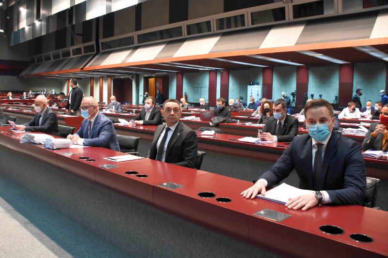 Пре почетка Скупштине Београда о безбедности одржана је конференција за новинаре испред Центра “Сава”, на којој је заменик шефа одборничке групе Народне странке у Скупштини Београда Милош Павловић оценио да министар унутрашњих послова Александар Вулин, не може да подноси извештај о стању безбедности у земљи, јер је “човек који је промовисао ‘Јовањицу’ и неко ко не може да докаже порекло своје имовине”.