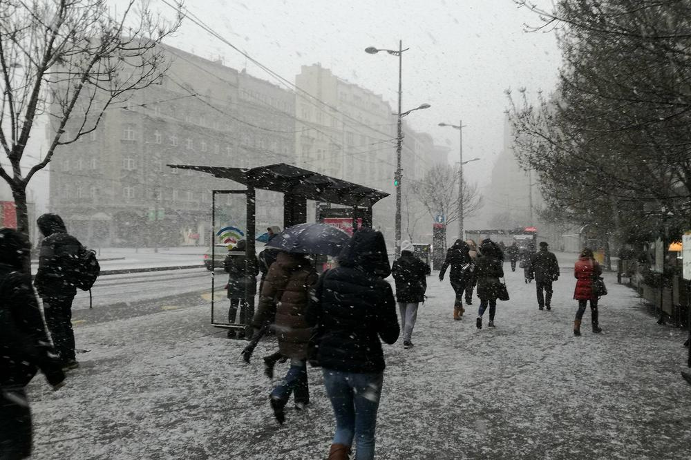 У Београду се очекује облачно и ветровито са снегом, уз повремено јак ветар. Највиша дневна температура биће око нуле.