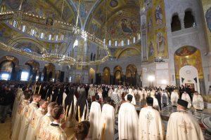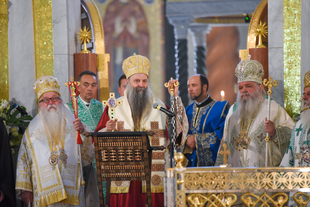 “Радујмо се и веселимо се, радујмо се браћо и сестре јер се данас радује пуноћа цркве, небо и земља, сви свети се радују, светитељ Сава и сви који су засађени у његовом корену”, рекао је Порфирије у Храму Светог Саве у Београду, где је служио литургију помирења заједно са архиепископом охридским и македонским Стефаном и архијерејима обе цркве.