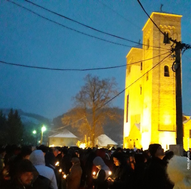 Грађани су се и ове вечери окупили испред цркве Светих апостола Петра и Павла у Бијелом Пољу.