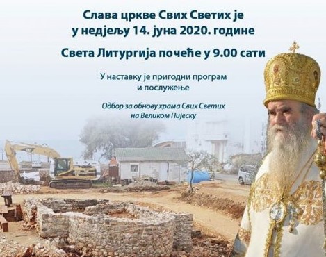 Митрополит црногорско-приморски Амфилохије освештао је славски колач и служио литургију у цркви Свих Светих на Великом Пијеску код Бара, која данас прославља храмовску славу.