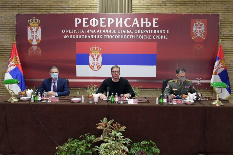 Србија није никоме претња, наоружава се у обиму који је потребан јединицама да одбране земљу, рекао је министар Небојша Стефановић после састанка председника Александра Вучића са војним врхом у Дому гарде на Топчидеру у Београду, на конференцији за новинаре по завршетку реферисања, истакао да је 2021. година, прва после доста времена у којој постоје позитивни помаци, односно да је укупан прилив официра, подофицира и војника већи од одлива.