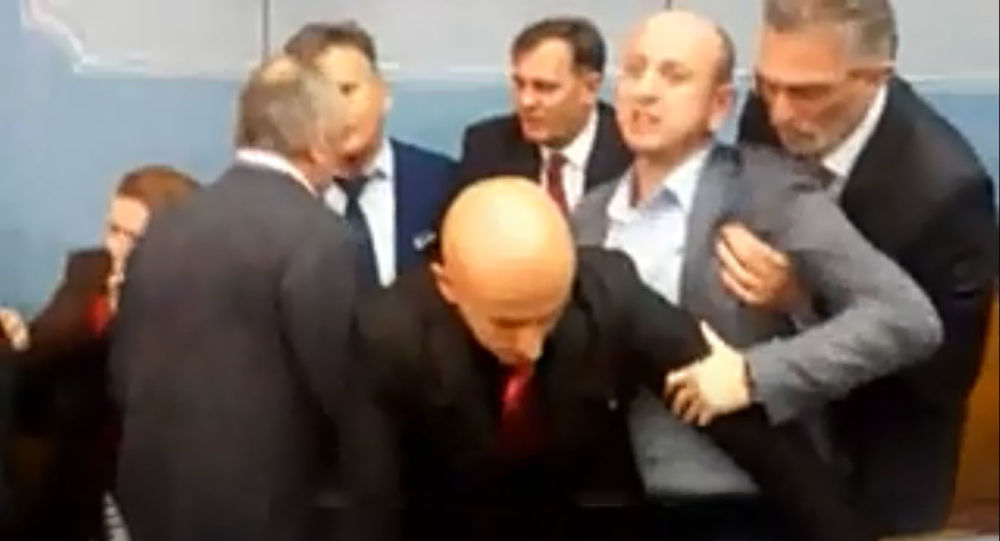 Претходно су сви посланици опозиционог црногорског Демократског фронта (ДФ) ухапшени у Скупштини Црне Горе. Посланик ДФ-а Милан Кнежевић је повређен, док су остали посланици ДФ-а добро.