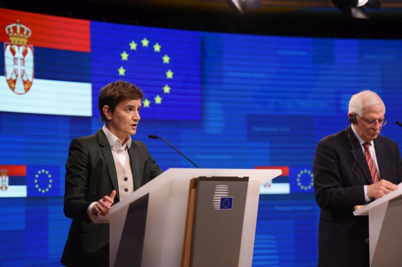 Брнабић је на заједничкој конференцији за медије са високим представником ЕУ за спољну политику и безбедност и потпредседником Европске комисије Жозепом Борелом и комесаром за суседску политику и преговоре о проширењу Оливером Вархејиeм, поручила да ће Србија наставити са реформама у четири најважније области – владавини права, јавнoj управи, економији и Зеленој агенди.