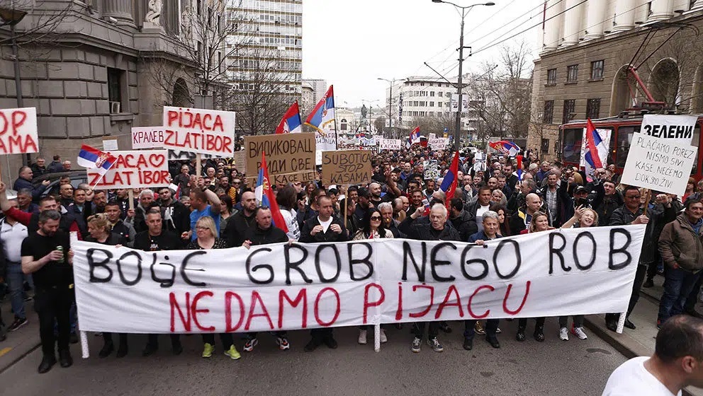 Пијачни продаваци, незадовољни због увођења електронске фискализације, блокирали су у среду центар Београда.