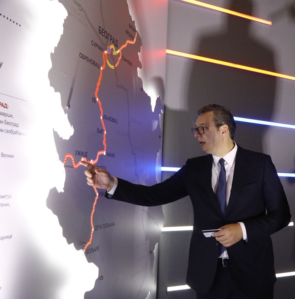 Председник Републике Србије Александар Вучић присуствовао је данас, у Палати Србија, отварању мултимедијалне изложбе “Србија 2019 – година инфраструктуре: Ништа више није далеко” на којој су приказани остварени резултати и нови пројекти у области инфраструктуре, грађевинарства и саобраћаја.
