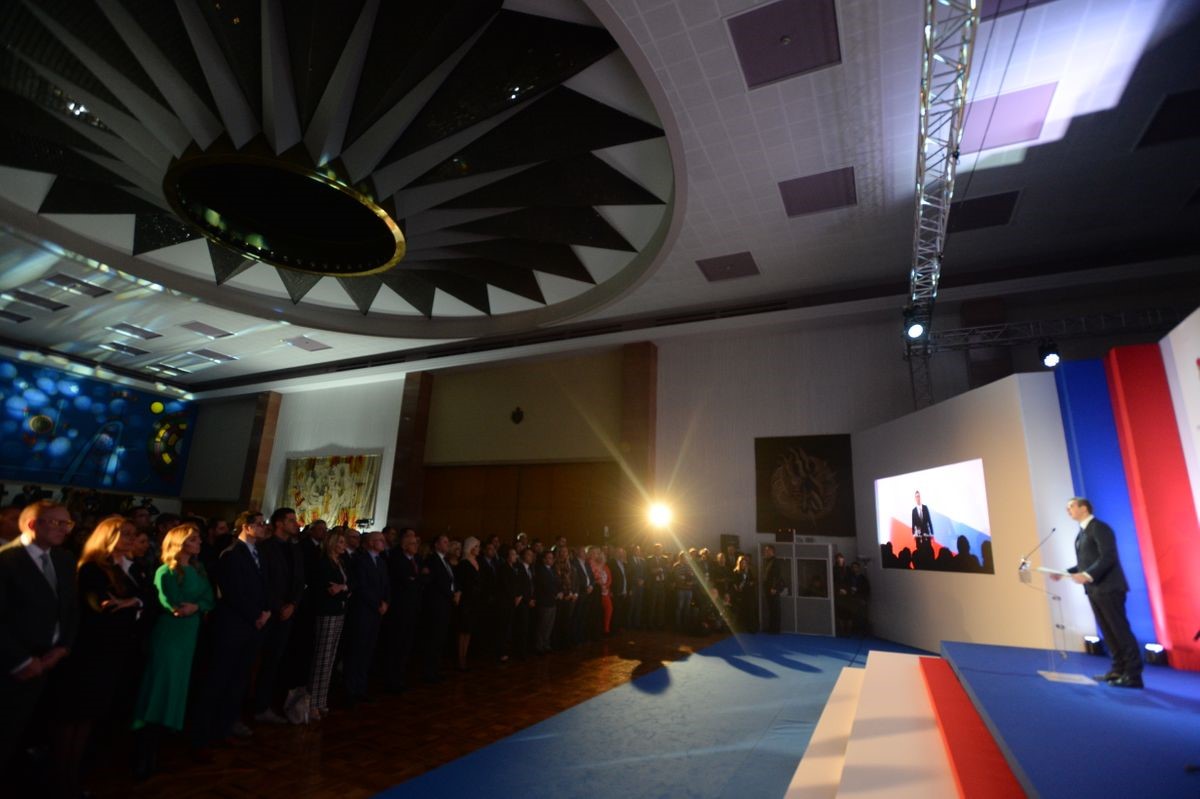 Председник Републике Србије Александар Вучић присуствовао је данас, у Палати Србија, отварању мултимедијалне изложбе “Србија 2019 – година инфраструктуре: Ништа више није далеко” на којој су приказани остварени резултати и нови пројекти у области инфраструктуре, грађевинарства и саобраћаја.