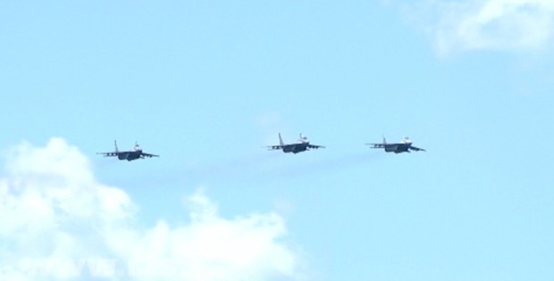 Приказ ваздухоплова почело је налетом хеликоптера Ми-35. затим су прошли лаки вишенаменски хеликоптери Х-145М. Пажњу окупљених привукла су четири ловачко-борбена авиона “орао”.