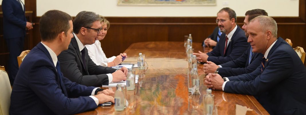 Председник Србије Александар Вучић разговарао је са америчким конгресменима Ериком Сволвелом и Шоном Малонијем о развоју билатералних односа, као и о стабилности у региону Западног Балкана.
