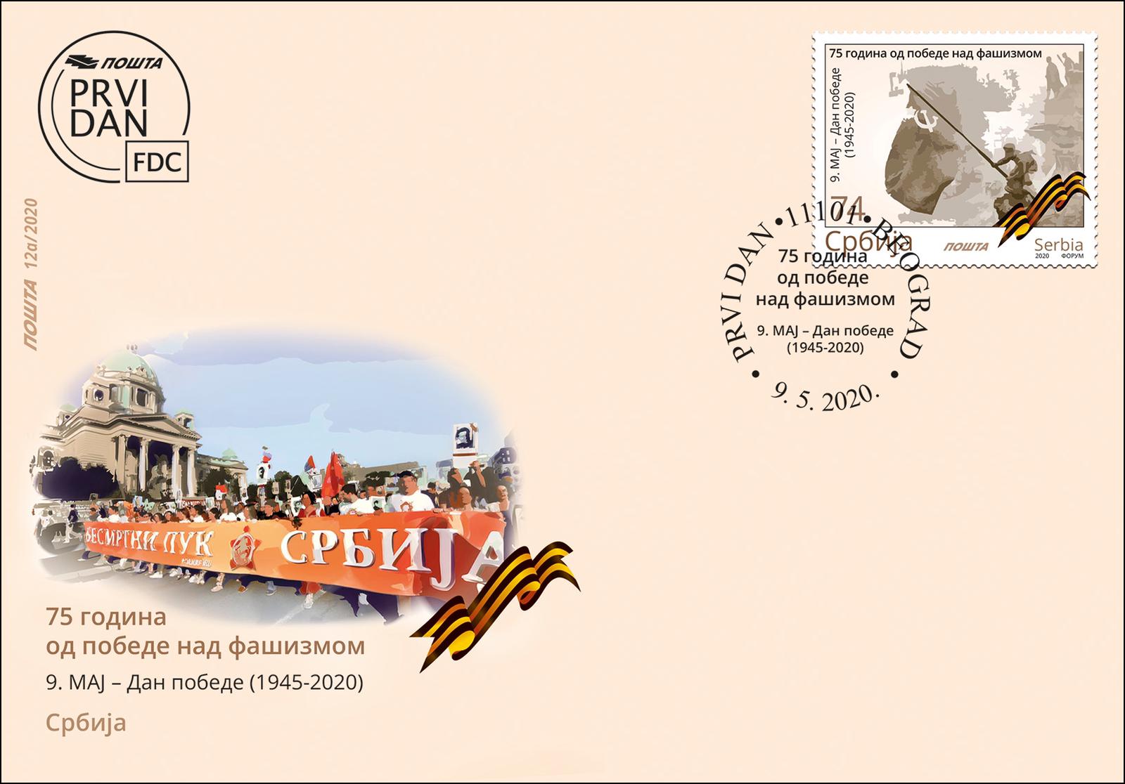 Пригодна марка посвећена прослави 75 година од победе у Другом светском рату, у чијем се централном делу налази вињета са мотивом Бесмртног пука, биће пуштена у промет 9. маја, у част обележавања овог важног јубилеја и као подсећање на допринос Србије у победи над фашизмом и велике жртве које је у тој борби поднела.