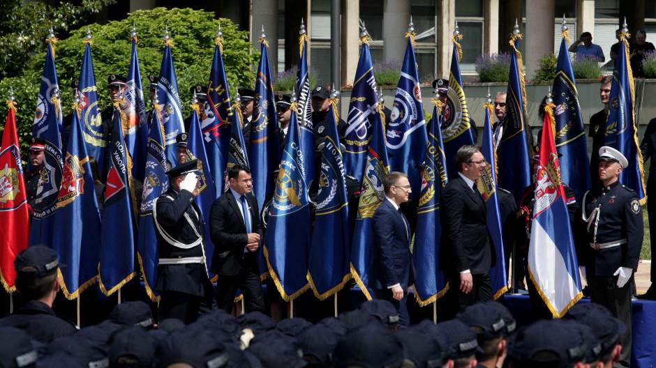 Министарство унутрашњих послова и полиција обележавају свој Дан. Централна манифестација одржаnа je на платоу испред Палате Србија. Свечаности су присуствовали и председник Србије Александар Вучић, који је уручио златне медаље за заслуге припадницима МУП-а. Никада нећемо дозволити понижавање српског полицајца, поручио је Вучић. Министар полиције и директор полиције уручили су сребрне и бронзане медаље. У току показне вежбе.