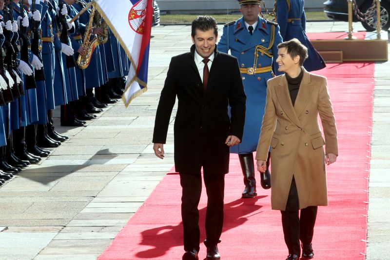 Председница Владе Ана Брнабић организовала је испред Палате “Србија” свечани дочек за бугарског колегу Кирила Петкова који борави у званичној посети Београду, а са којим ће имати “тет а тет” разговор.