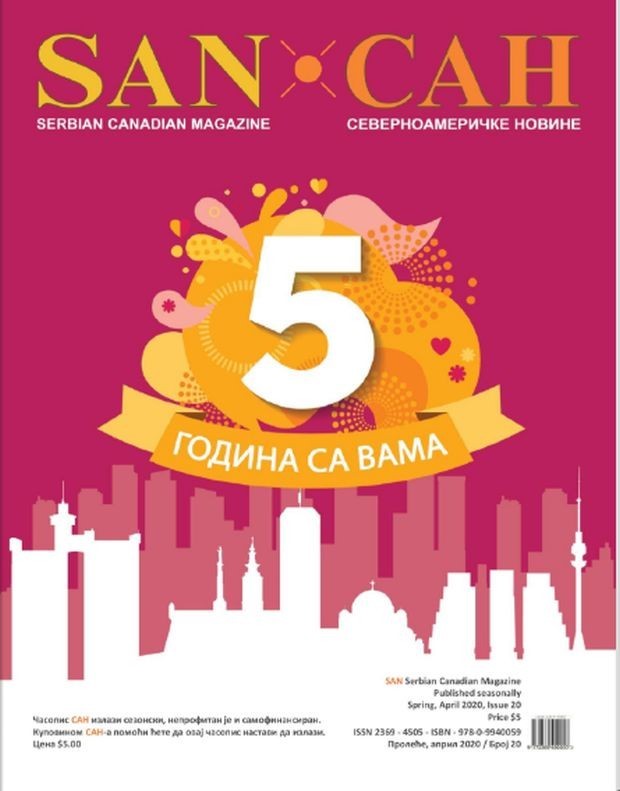 „Поносна сам што смо опстали пет година и што часопис излази из штампе редовно четири пута годишње, а веб-сајт sanmagazine.ca се освежава новим садржајем за читање, посебно имајући у виду данашње време у којем штампане публикације тешко опстају уколико нису бесплатне и многе прелазе на искључиво онлајн издање. Поносна сам и на награде и признања које смо добили. Године 2016. смо добили захвалницу за допринос квалитету и богатству библиотечких збирки и очувању националне културне баштине од стране Народне библиотеке Србије, у којој се, поред архива Канаде, такође архивира часопис. Од стране Националног савета за етничку штампу и медије Канаде, 2016. и 2018. године САН је добио награде за најбољу уређивачку концепцију и визуелну и уметничку презентацију. Понављам: САН није само часопис, већ је у српској заједници у Канади и САД постао и значајна друштвена организација у којој су људи окупљени око идеје очувања српског идентитета и језика у расејању. САН је присутан на многобројним догађањима у српској заједници и одржава сарадњу са многим другим организацијама и групама српских имиграната из бивше Југославије у дијаспори” – закључује Весна Недић, уредница часописа, којим се поноси српска заједница у Канади, а који слави пет година успешног објављивања. Заслужују најискреније честитке, уз жељу да још дуго трају!