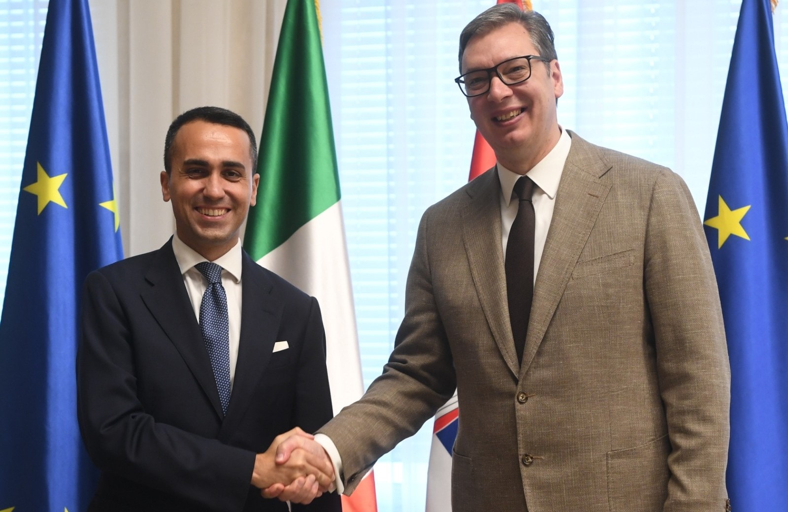 Председник Републике Србије Александар Вучић састао се данас са министром спољних послова и међународне сарадње Републике Италије Луиђијем ди Мајом, са којим је разговарао о даљем развоју билатералне сарадње, евроинтеграцијама Србије, геополитичким приликама и регионалним односима.