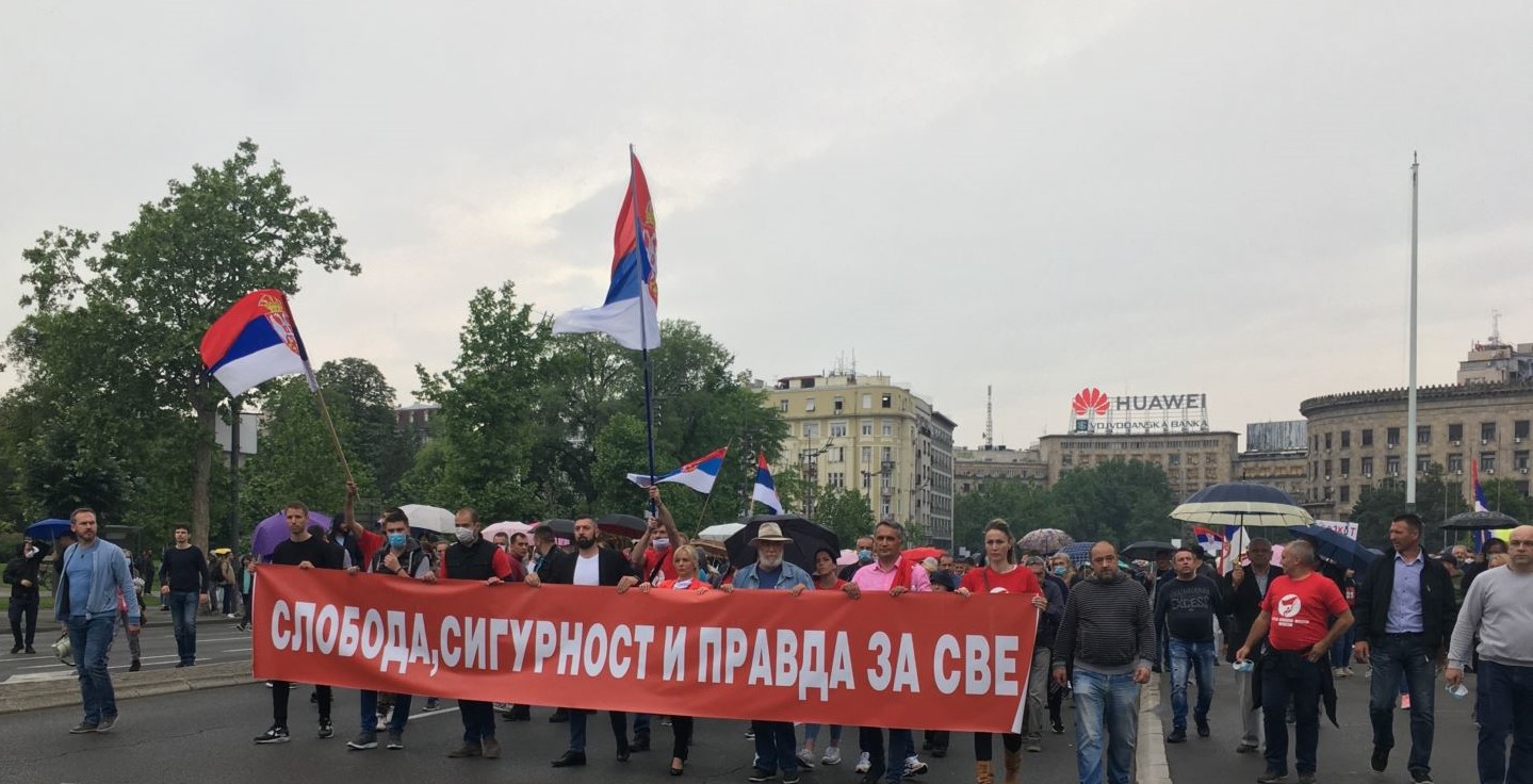 Током окупљања на платоу испред зграде Народне Скупштине грађани су, на позив организатора стајали распоређени на размаку од два метра, поштујући здравствену меру прописану у циљу борбе против пандемије КОВИД-19.