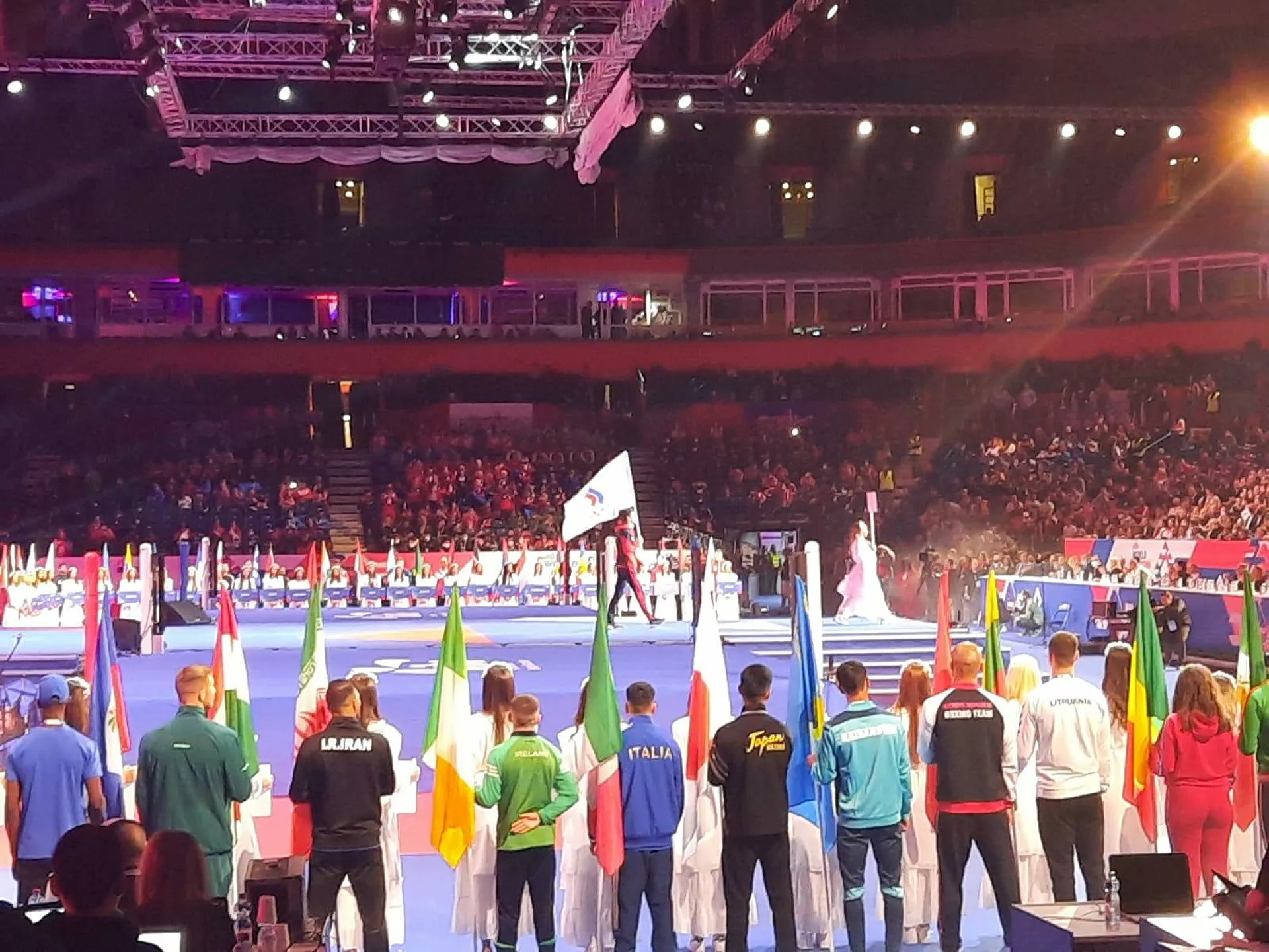 После представљања репрезентација уследио је говор Вање Удовичића, министра спорта у влади Србије, а затим је уследила и химна наше државе коју је отпевала Невена Божовић.