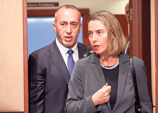 ЕУ је данас поново инсистирала на укидању једностраних тарифа уведених на робу из Србије и БиХ и позвала приштинске власти да наставе примену Споразума о стабилизацији и придруживању , али и да формирају Заједницу српских општина. Харадинај је одбацио те захтеве. После напетог сусрета Харадинаја и Могеринијеве, отказано обраћање новинарима
