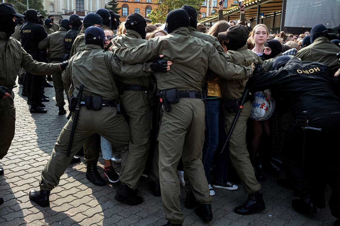 Они су тражили пуштање на слободу затворене лидерке опозиције Марије Колесникове и позивали председника Лукашенка да се повуче.