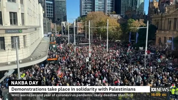 У Сиднеју демонстранти су се окупили испред зграде Градског већа и потом марширали улицама узвикујући „Слободна, слободна Палестина“ и „Слободна Газа“.