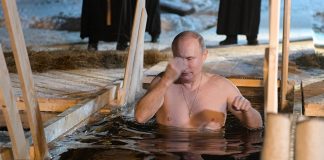 Путин и ове године на Богојављење заронио у ледену воду